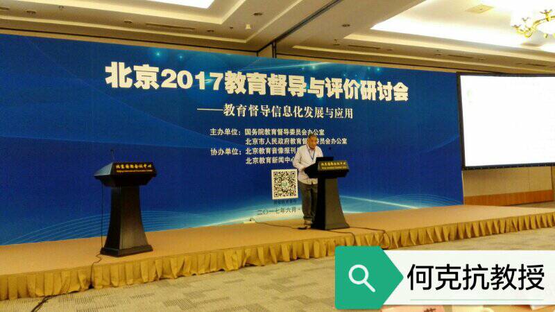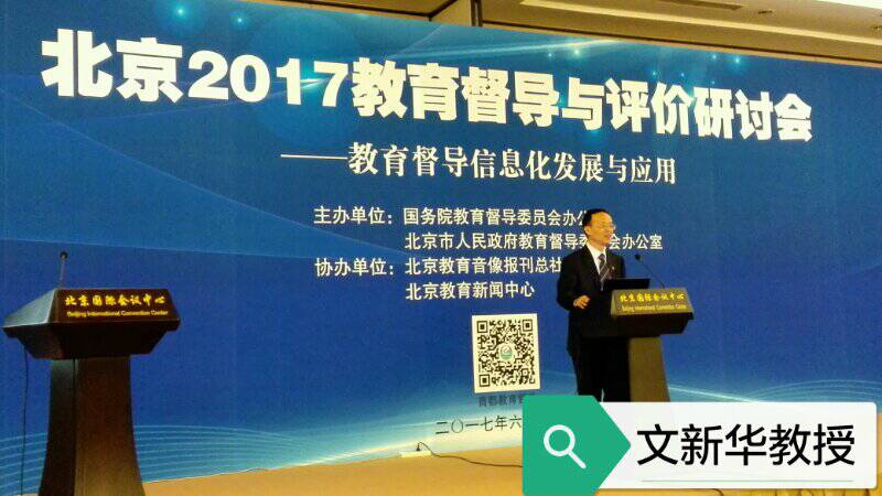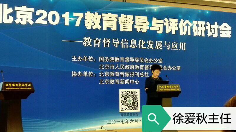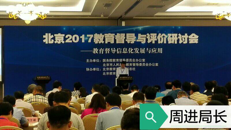 《北京2017教育督导与评价研讨会》于2017年6月15-16日在北京国际会议中心召开。本次研讨会的主题是“教育督导信息化发展与应用”,会上沈阳市督导室徐爱秋主任、贵阳市教育局局长督导室主任周进、北京师范大学何克抗教授、华东师范大学文新华教授等八位同志做了精彩演讲。教育部、北京市、教育部督导局、教育部科技司、工信部信息化和软件服务业司领导致辞和讲话、报告。北京市教育督导室唐立军主任等三位同志做了主旨演讲 。