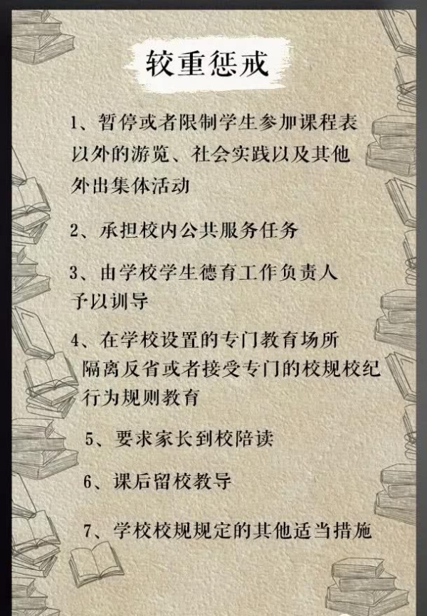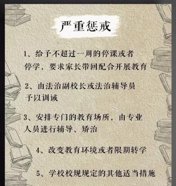 毕竟现在的熊孩子想法是越来越多,各种违纪的方法也是五花八门,再加上如今教育环境的复杂化,惩戒措施不细是不行的。